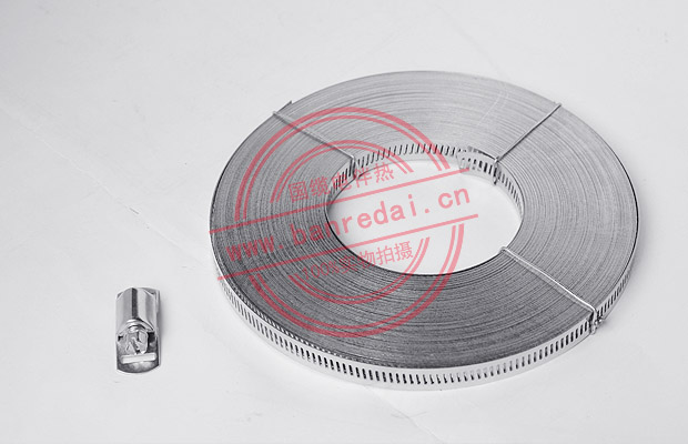 不銹鋼扎帶(俗稱(chēng)卡喉)、卡扣由10mm寬1.0mm厚連續(xù)長(zhǎng)度的不銹鋼帶以及固定螺絲所組成。它可以將接線(xiàn)盒等附件固定在管道上。鋼帶可根據(jù)管徑大小,按實(shí)際需要長(zhǎng)度剪切。安裝時(shí),調(diào)節(jié)時(shí),調(diào)節(jié)固定螺絲,即能將接線(xiàn)盒或其它附件固定在管道上。訂貨時(shí),須提供緊固螺絲套數(shù)和所需鋼帶總長(zhǎng),每圈鋼帶長(zhǎng)度是固定鋼管外壁周長(zhǎng)的1.1倍。